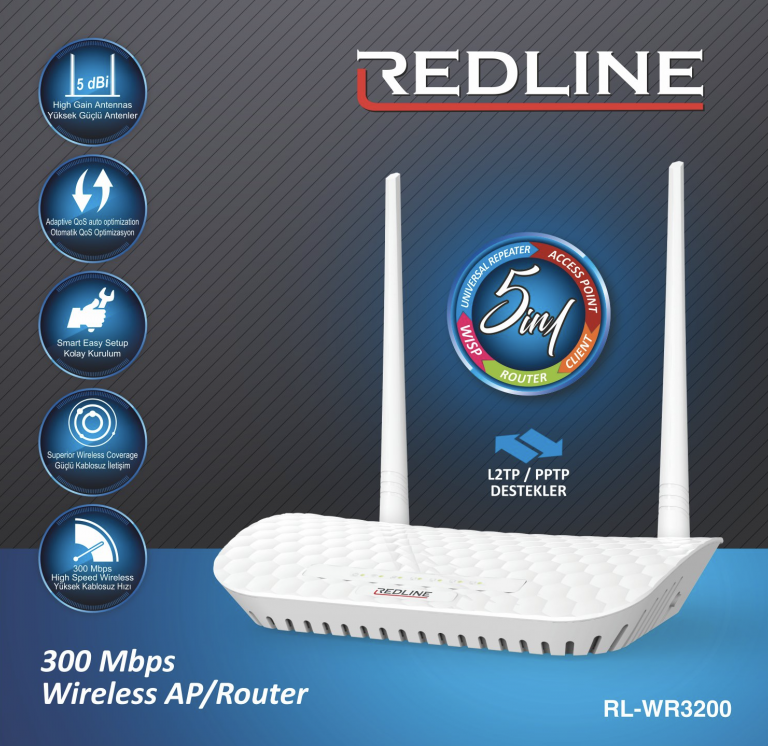 Redline RL-WR3200 Router 300 Mbps 2 ANTENLİ